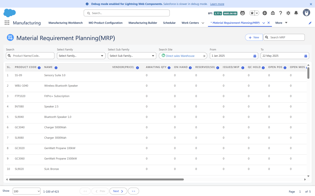 Schedule production based on real-time data, material availability, and shop floor capacity with built-in MPS and MRP tools.