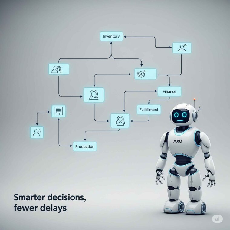 Powered by Salesforce Agentforce, Axo is our AI-driven suite that makes operational decisions smarter — recommending reorder points, flagging fulfillment delays, and reallocating stock in real time.
